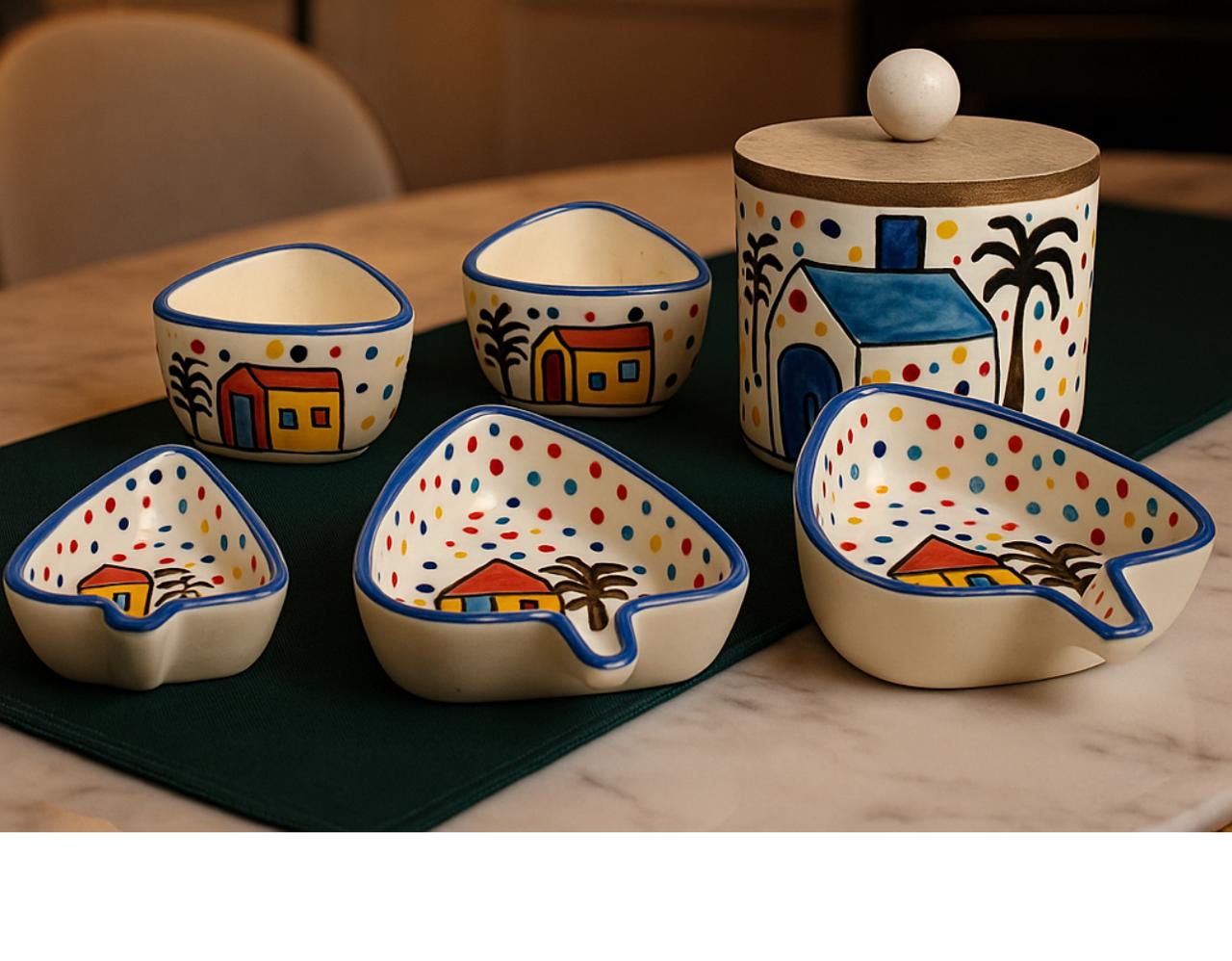 Hand‑Painted Hut - Ceramic Oil Dispenser Set of 2